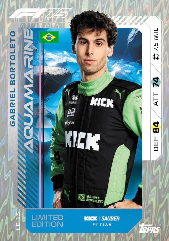 - Collect rare Turbo Attax F1 2024 cards, including 3 Limited Edition cards and a Signature Style card (1:12), with a design focused on vibrant colors and bird’s-eye views of McLaren, Ferrari, and more.
